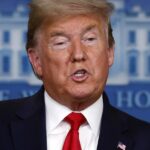 President Donald Trump speaking at a lectern